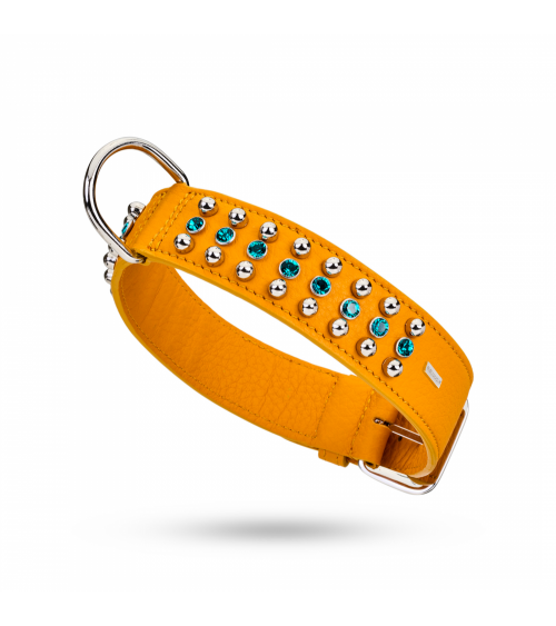 Quick view BRIGHT COLLAR Price €125.00 Bull leather made in Italy, waxed and brushed edges, Swarovski stones, chiseled buckle with an exclusive Malucchi design, silver hardware....