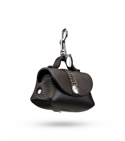 Structure in soft Italian calf nappa leather, featuring a detail in wool/cotton blend fabric with a Pied de Poule pattern in dark brown....