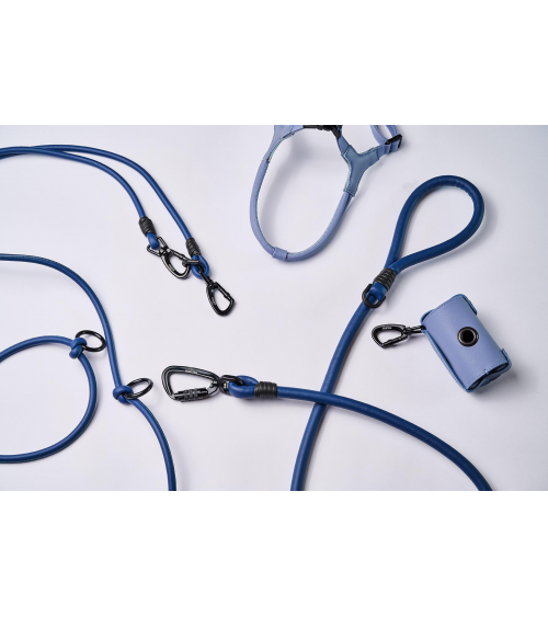 Cylindrical structure, made entirely of certified eco-leather, double opening accompanied by a small black climbing carabiner that makes the accessory versatile.