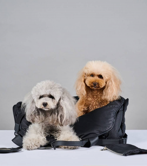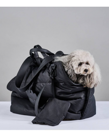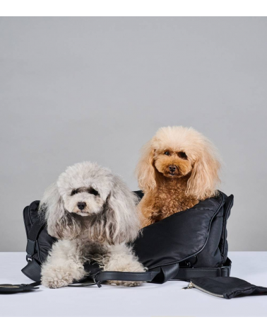 The whole bag is finished in tubular faux leather, so as not to get in the way when rubbing the dog's fur.