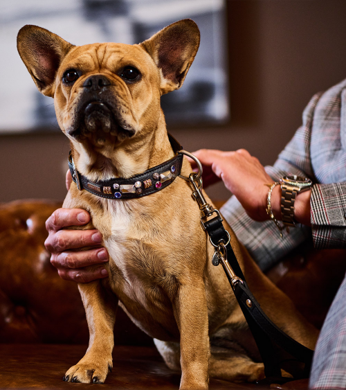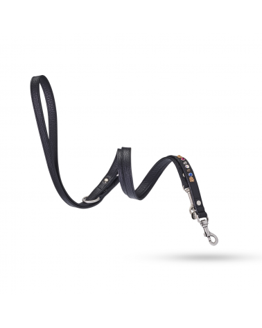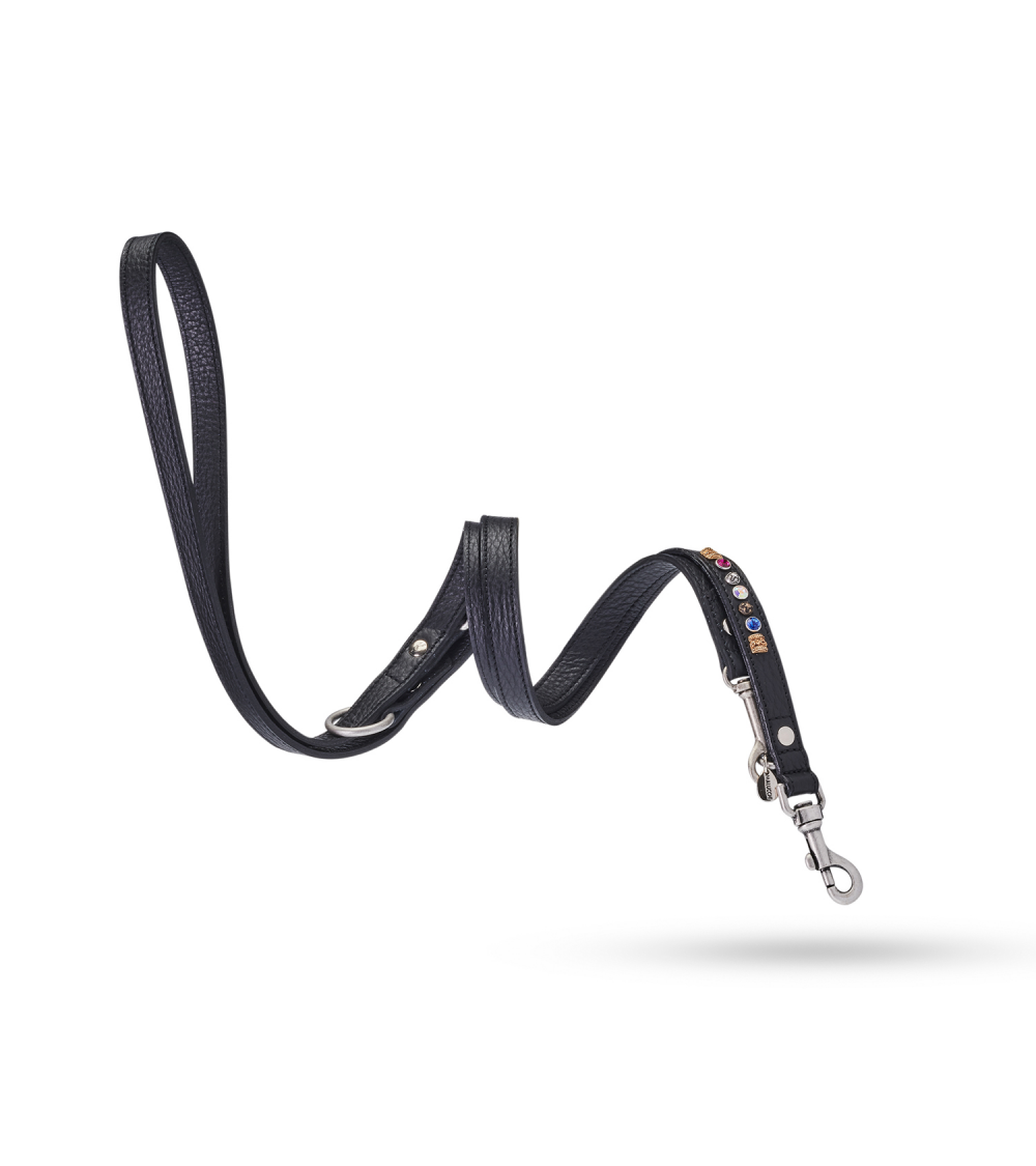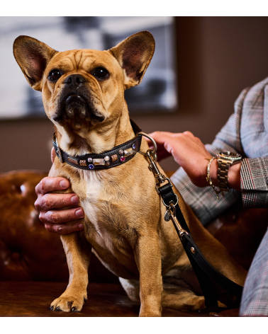 Bull leather made in Italy, waxed and brushed edges, Swarovski stones, chiseled buckle with an exclusive Malucchi design, silver hardware. Colors of the applications change according to the color of the leather of the article.