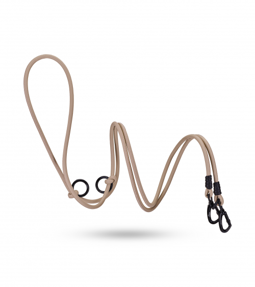 Morbido nastro in tessuto misto lana/cotone con trama Pied de Poule colore nocciola. Fodera in morbida nappa di vitello di origine italiana....