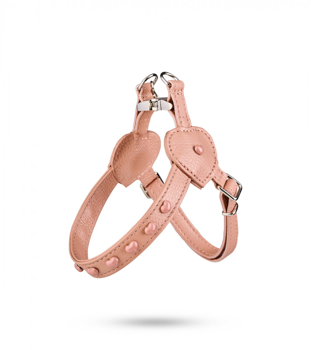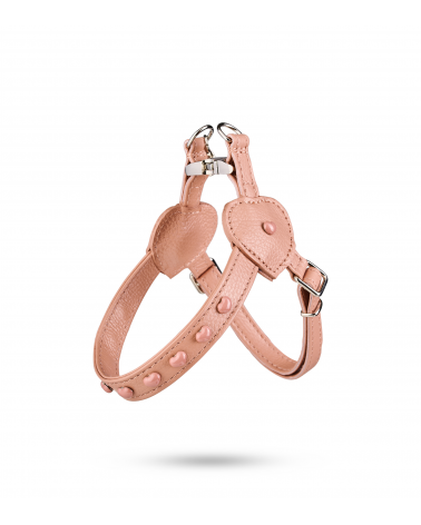 Una collezione dalle linee essenziali, realizzata in morbida pelle di nappa dai colori tenui ed impreziosita con borchie a forma di cuore ton su ton. Un connubio di eleganza e morbidezza. Un inno alI’amore che ci lega ai nostri amici a quattro zampe, che li rende adorabili e li fa sentire a loro agio grazie al comfort della vestibilità e alle forme eleganti e lineari allo stesso tempo.