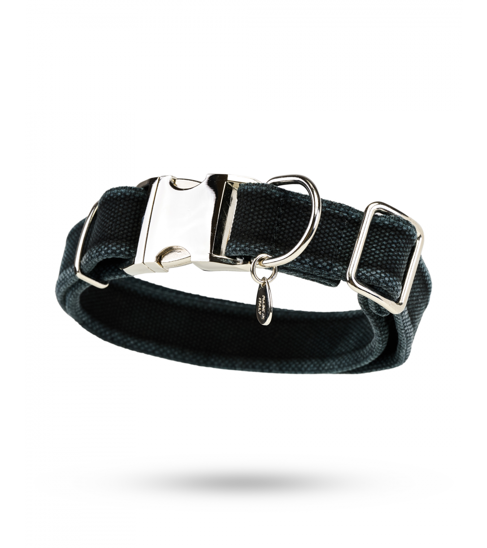 Morbido nastro in cotone stile 'Urban Street', con tenuta estrema. Struttura minimal, regolabile con un solo passaggio grazie all'accessorio scorrevole. Regolazione taglie da cm 40 a cm 70  (da M a L). Indicato per cani di taglia medio/grande.Fibbia in alluminio ultra leggera, finitura palladio.